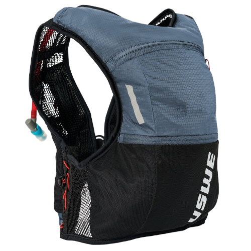 The harness technology integrated in the vest for trail runners. The vest is light-weight and sits tight with zero bounce. It has elastic side panels that expands along with the chest during physical exertion, allowing a constant tight and compliant fit